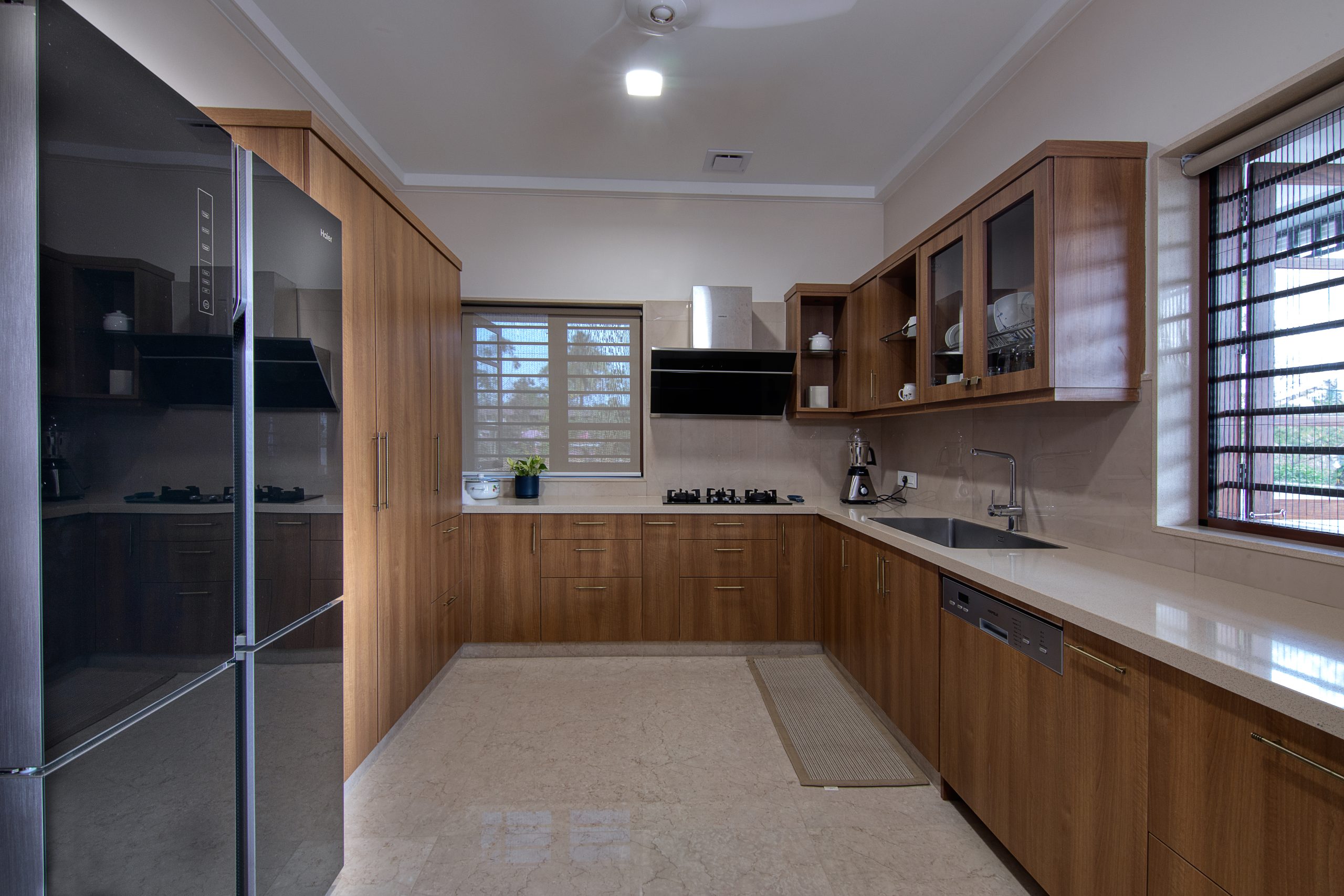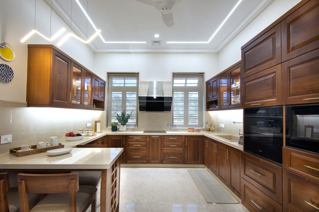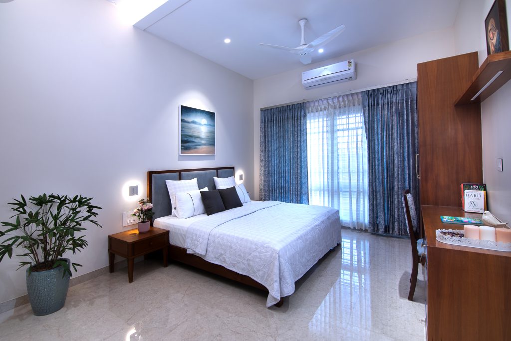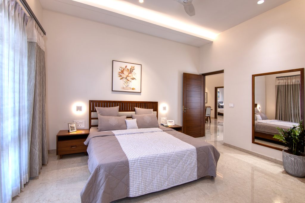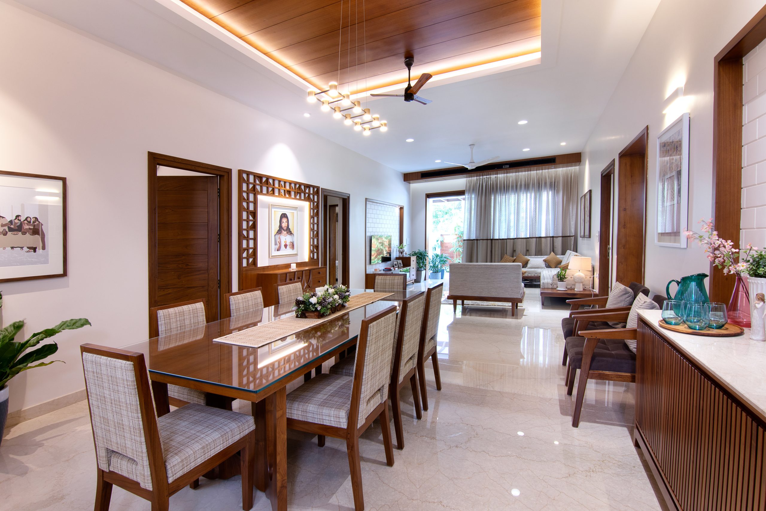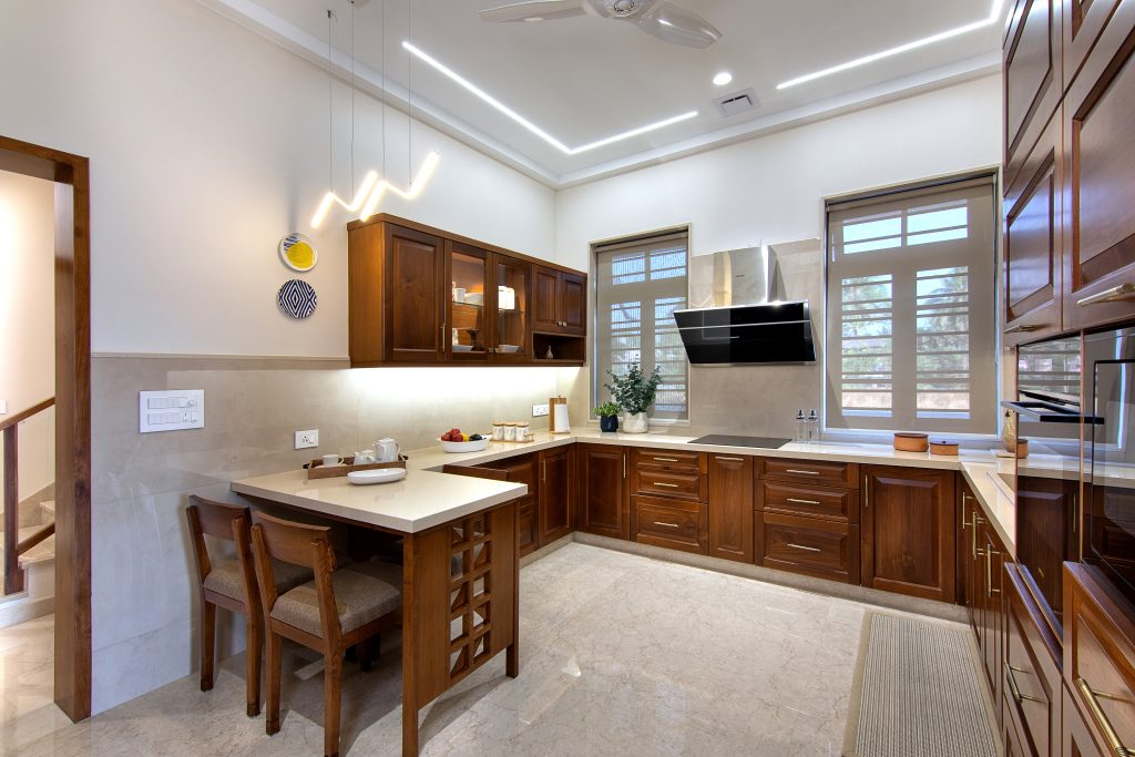 Modern interiors can be stylish and functional, as we’ve designed this space with tactile finishes and a serene ambience that invites presence.